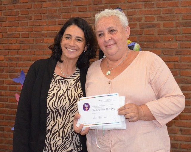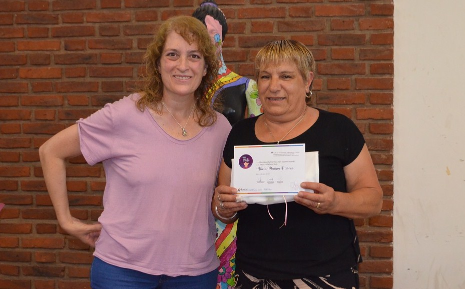 Previo a la entrega de los certificados y un presente, el cual fue confeccionado por el Taller de Costura del Hospital Municipal, Angélica Bassagaisteguy hizo la interpretación de un poema. Situación similar se vivió al finalizar el evento, cuando fue nuevamente convocada para participar.