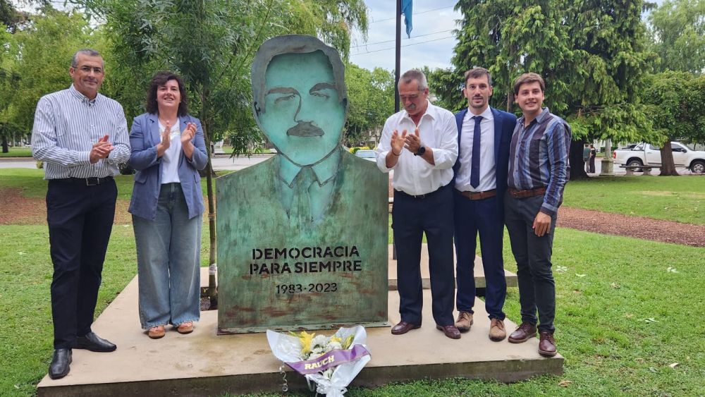 El 10 de diciembre se cumplieron 42 años del retorno de la Democracia. En nuestra ciudad, el Gobierno Municipal reafirmó esta fecha, tan significativa para la sociedad argentina, con un acto realizado en el Palacio Municipal, espacio donde se encuentra la placa en homenaje al Presidente Raúl Ricardo Alfonsín. El evento estuvo encabezado por el Intendente Maximiliano Suescun, junto con funcionariado municipal, concejalas y concejales, consejeros escolares, y vecinos.
