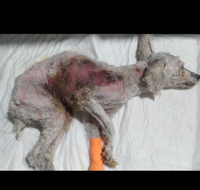 La intervención se produjo tras el llamado de un niño que alertó sobre la presencia de cachorritos arrojados en la zona. Las voluntarias de APART se dirigieron al lugar y, tras la búsqueda entre los pastizales, localizaron una bolsa de arpillera anudada. Al abrirla, se encontraron con la desgarradora escena de un pequeño caniche lastimado, con evidentes signos de infección, heridas “en carne viva” y la falta de un ojo.