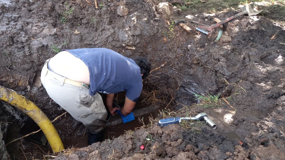 Durante la mañana, agentes de la dirección de Aguas, dependiente de la Secretaría de Obras y Servicios Públicos, llevaron adelante la reparación de un caño de suministro de agua potable que se encontraba dañado, provocando una visible pérdida en el sector.