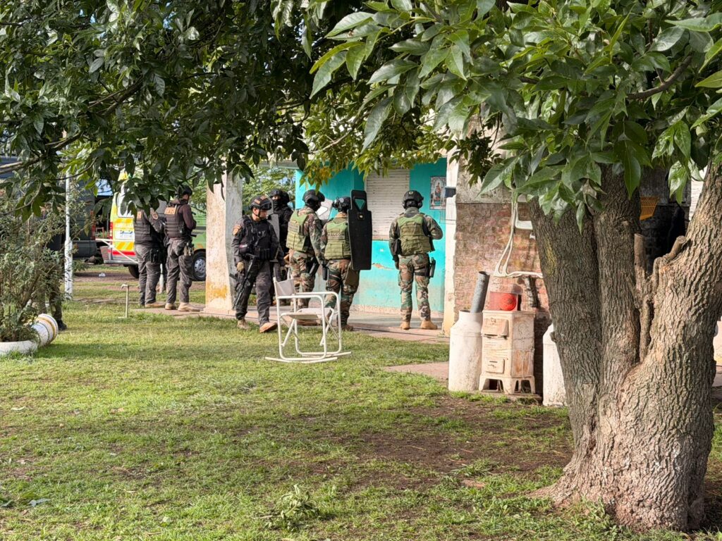 Finalmente, fueron localizados en un establecimiento rural dedicado a la actividad tambera, ubicado sobre Ruta Provincial 50, a pocos kilómetros de la rotonda “Di Candilo”. Allí, el imputado se atrincheró armado con un revólver y amenazó con quitarse la vida ante una eventual intervención.