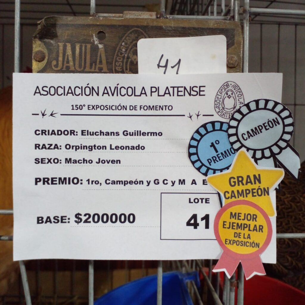 El pollo Orpington leonado presentado por Eluchans se llevó todos los galardores: obtuvo el primer premio, Campeón, Gran Campeón y mejor Ejemplar de la Exposición.