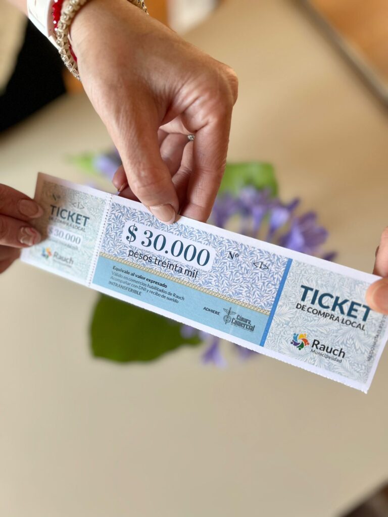 Los tickets, que se presentan en denominaciones de 20 mil y 30 mil pesos, pueden ser utilizados en cualquier comercio habilitado de Rauch, ofreciendo a los beneficiarios una amplia variedad de opciones para sus compras. Además, los comercios que sean socios de la Cámara Comercial de Rauch y estén adheridos al programa “Yo te Compro Rauch” ofrecerán un 10% adicional en las compras realizadas con estos tickets, incentivando aún más el consumo local.