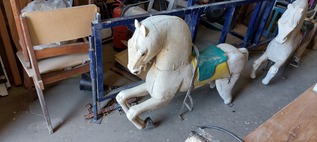 Posteriormente, se reemplazó el piso fenólico por un piso de chapa, dejando los caballitos fijos y agregando dos caballos más.
