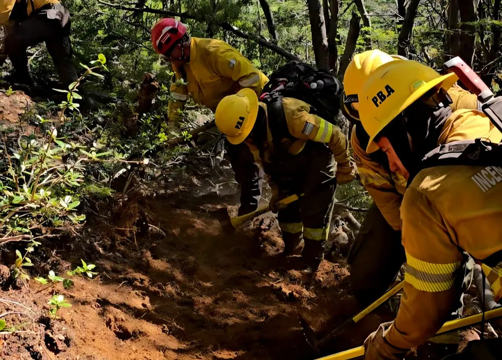 El director Provincial de Defensa Civil, Fabián García, movilizó un operativo compuesto por unas 55 personas, de las cuales 40 forman parte de un cuerpo de combatientes especializados en incendios forestales. Este equipo de élite está integrado por motosierristas, motobombistas y personal táctico, todos certificados y equipados para operar en terrenos de alta complejidad y difícil acceso, que, además, representan a cuerpos de bomberos de diversos distritos bonaerenses.