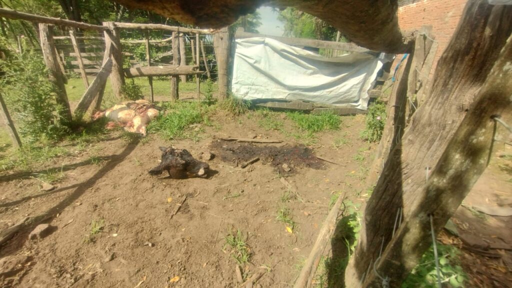 El productor denunció que al arribar al predio encontró la cabeza y vísceras del animal faenado.