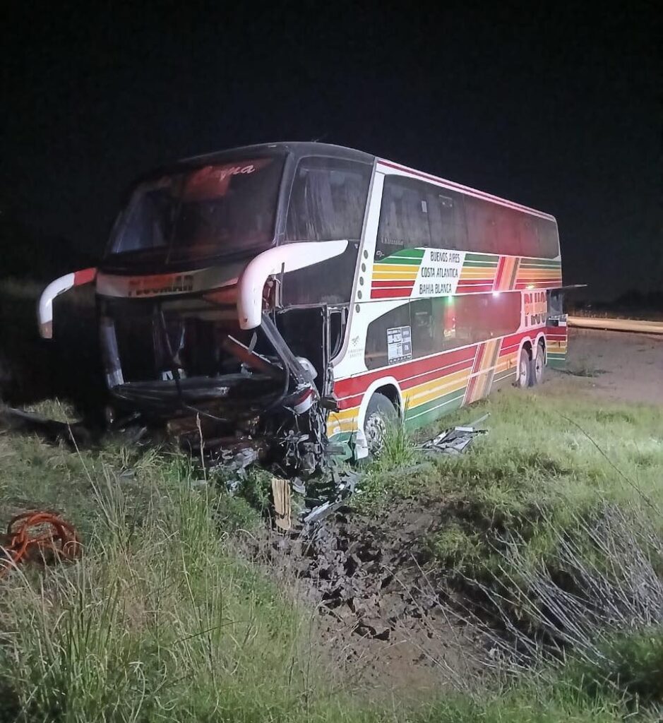Como consecuencia del impacto, el automóvil se cruzó de carril y chocó de frente contra un colectivo de larga distancia de la empresa Plusmar, dominio AA576YA, conducido por Baldomero Ismael Carrasco, oriundo de Morón. El chofer quedó atrapado entre los hierros y falleció minutos después, elevando a tres el número total de víctimas fatales.