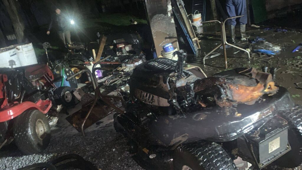 El fuego arrasó con todo lo que se encontraba dentro del espacio que la institución utilizaba como taller y utilería: tres tractores en funcionamiento, dos motoguadañas, camisetas, pelotas, herramientas de mano, materiales de entrenamiento y elementos utilizados en los encuentros de fútbol infantil, como señalética de canchas.