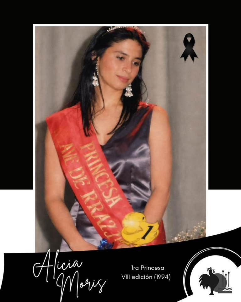 La Comisión Directiva de la Fiesta Nacional del Ave de Raza expresó su profundo pesar por el fallecimiento de Alicia Moris, quien formó parte de la historia de la celebración al ser coronada como Primera Princesa en la edición de 1994.