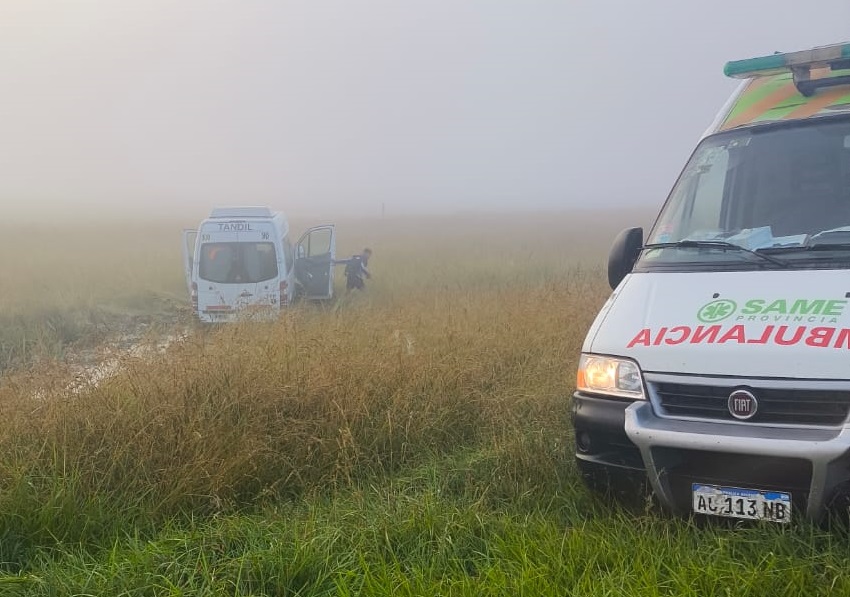 Afortunadamente, la combi no volcó. Tres pasajeros resultaron con heridas leves, entre ellos una mujer oriunda de Rauch, y fueron atendidos en el Hospital Municipal.