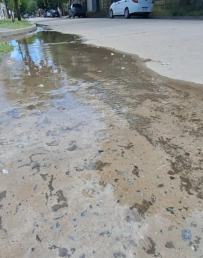 El problema se originó el sábado. Según el relato de los propios frentistas, la pérdida es de tal magnitud que el caudal de agua avanza de forma ininterrumpida por calle Saavedra, cruzando la Avenida Perón y continuando su curso en dirección a calle Quintana.