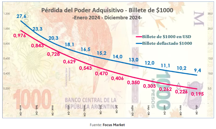 “Si asumimos un 2024 con inflación proyectada por sobre el 213% podemos considerar que estos billetes al final del período valgan aproximadamente $ 2961 y $ 5979 respectivamente, lo que significa que la pérdida de poder adquisitivo de nuestra moneda seguirá su curso”, detallaron desde la consultora.
