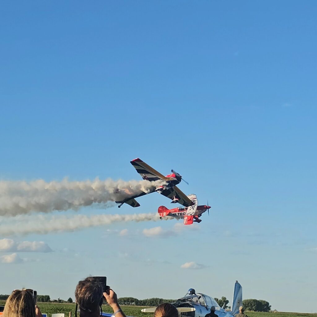 Entre las principales atracciones del festival se destacan las demostraciones de acrobacia aérea a cargo de reconocidos pilotos como Jorge Malatini, quien se presenta con su avión Pitts, y Roberto Buonocore, que realiza exhibiciones a bordo de su Yak 55, dos figuras de gran trayectoria dentro de la aviación deportiva argentina.
