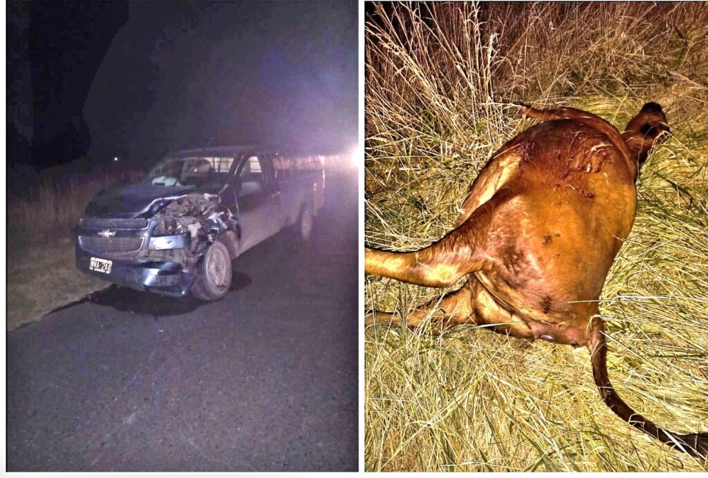 El conductor de una camioneta Chevrolet, dominio NVA-244 –identificado como Aníbal Chiramberro– resultó ileso este domingo luego de embestir un animal vacuno que se encontraba suelto en la Ruta 60.