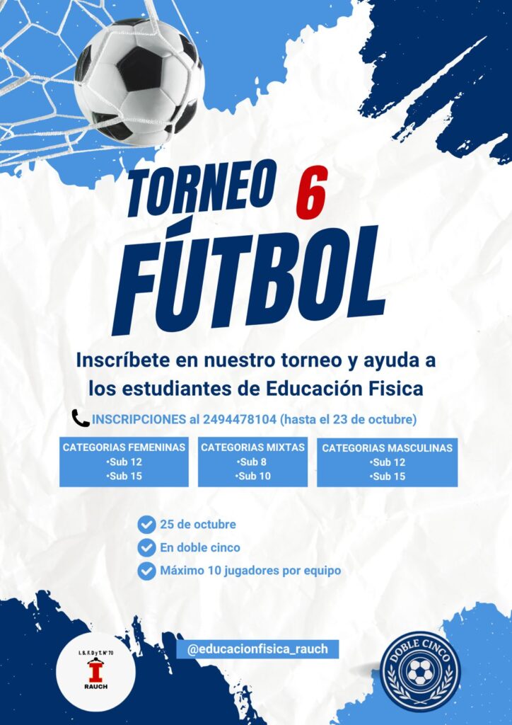 Con el objetivo de recaudar fondos destinados a la realización de un campamento estudiantil con fines educativos, los estudiantes de 2°, 3° y 4° año del Profesorado de Educación Física del Instituto Superior de Formación Docente N°70 organizan un Torneo de Fútbol 6 que se disputará el 25 de octubre en las canchas de Doble Cinco.