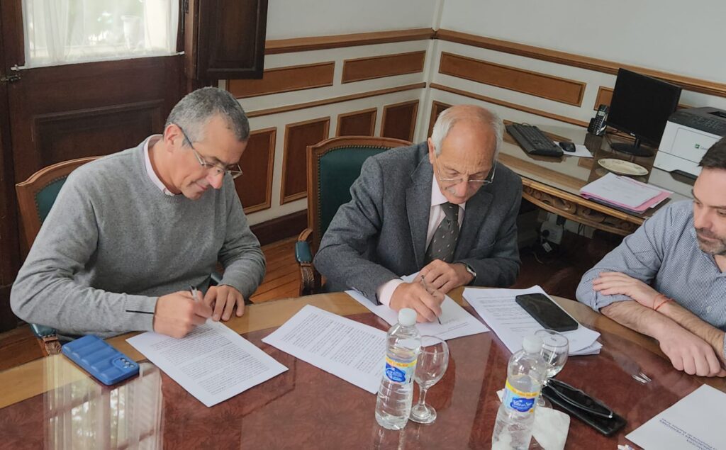 El intendente Maximiliano Suescun firmó este miércoles un convenio con autoridades de la Caja de Retiros, Jubilaciones y Pensiones de la Policía para la construcción de seis nuevas viviendas en Rauch.