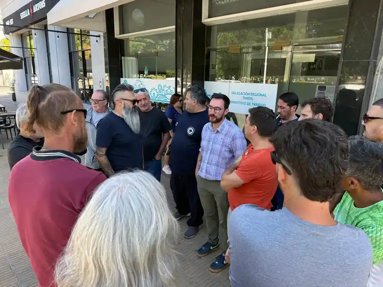 El Eco de Tandil estuvo frente a la oficina del Ministerio de Trabajo junto a los trabajadores despedidos, que fueron acompañados por representantes de diferentes sindicatos nucleados en la Mesa Intersindical Tandil, como docentes universitarios, bancarios, estatales, mecánicos, obreros mineros y otros. También se hizo presente el concejal Rogelio Iparraguirre y referentes regionales de Satif.
