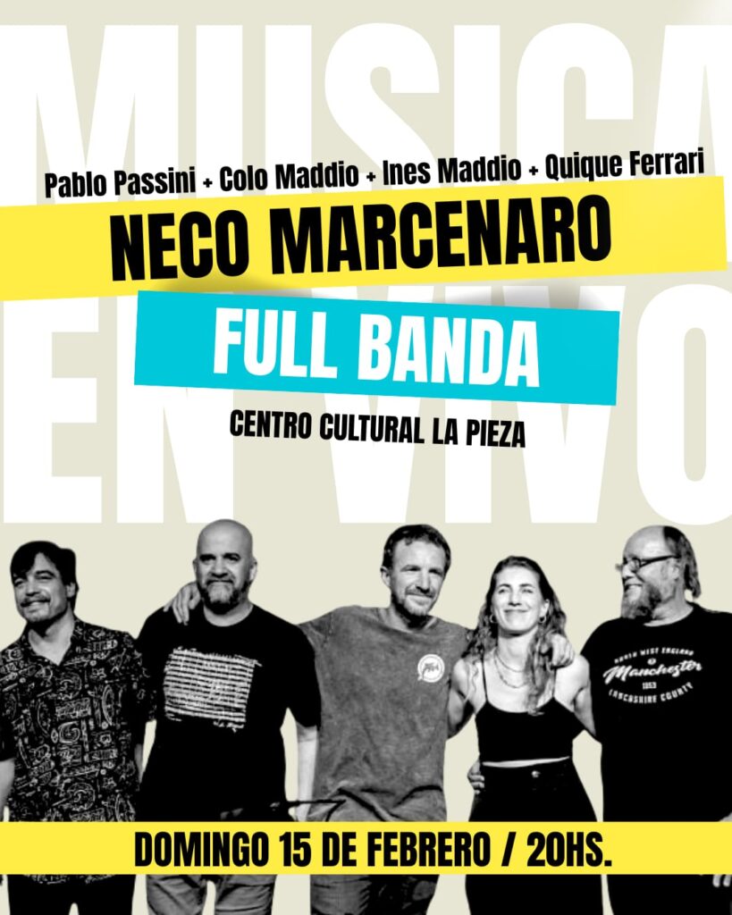 La programación continuará el 15 de febrero con música en vivo. Desde las 20 horas, se presentará por primera vez en la sala “Neco” Marcenaro en formato full banda, acompañado por reconocidos músicos: Pablo Passini, Inés Maddio, Quique Ferrari y Colo Maddio.