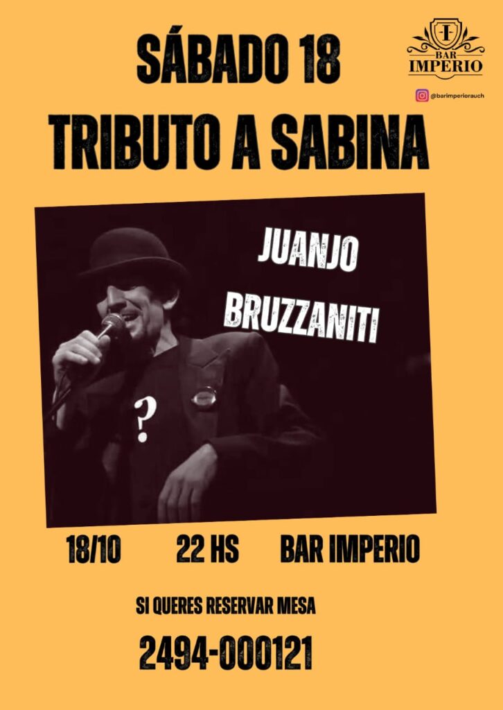 Este sábado 18 de octubre, Bar Imperio será escenario de una noche especial con un tributo a Joaquín Sabina, a cargo de Juanjo Bruzzaniti, reconocido por su estilo y su manera de revivir las canciones del emblemático cantautor español.