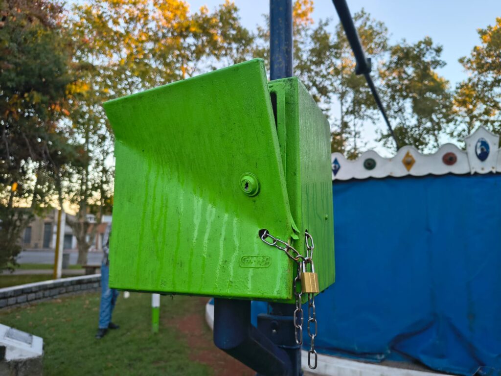 Un nuevo hecho de vandalismo se registró en Rauch durante la jornada de ayer, cuando autores ignorados provocaron daños en un tablero con llave térmica y en un sector del alambrado del cerco donde se encuentra la Calesita en Plaza de los Niños.