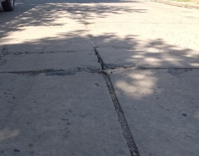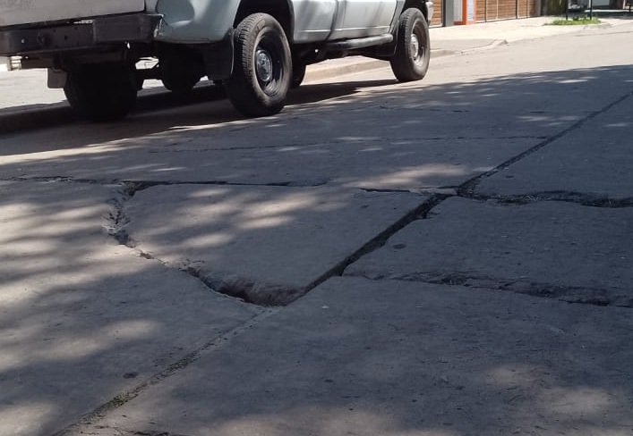 Vecinos de calle Rivadavia al 900, esquina Pueyrredón expresaron su preocupación por el estado del pavimento y reclamaron la intervención del Municipio.
