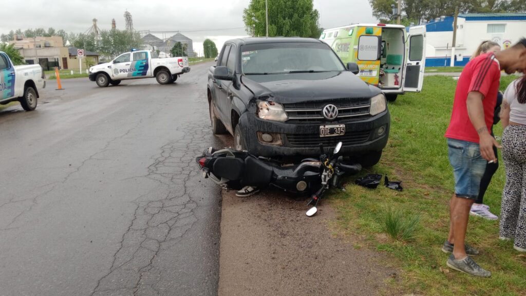 Un violento accidente de tránsito se registró este viernes alrededor de las 17.30 horas en la intersección de las avenidas Alvear e Irigoyen. Por motivos que aún se tratan de establecer, una camioneta Volkswagen Amarok, que circulaba por Alvear en sentido Sur-Norte, colisionó con una motocicleta Yamaha FZ de 150 cc que transitaba por Irigoyen.